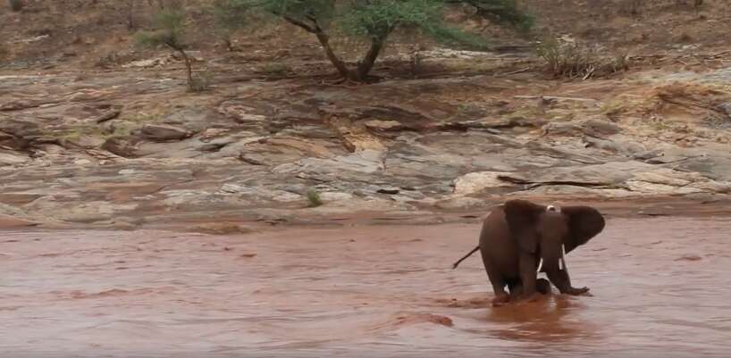 But the protective mother wasn’t going to let anything happen to her little son. In a video recorded by Matt Brierley, a photographer working with Save the Elephants, Soutine leaps into the river after her baby.